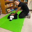 Az egyszerű ragtapasz szakszerű felhelyezésétől, vérzések elállításán keresztül egészen az újraélesztésig eljutottunk. A foglalkozás során megbeszéltük és imitáltuk, mit kell tennünk, ha valaki elájul, mit mondjunk a telefonban, amikor mentőt hívunk és, hogy hogyan nyugtassuk meg a bajbajutottakat. A nagyobb korosztály még a stabil oldalfekvés lépéseivel is megismerkedett.