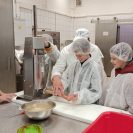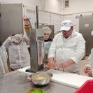 November 28-án délután az Agrárkamara segítségével a 7.a osztályból 13 gyerek részt vett egy szakmai gyakorlaton az iskola tanműhelyeiben. A fiúk a hentes szakma szépségeivel ismerkedtek meg, a kolbásztöltésen keresztül. A lányok a pék-cukrász műhelyben pogácsasütéssel foglalatoskodtak. A szakoktatók végig kísérték a gyerekek munkáját, bemutatták a szakmai fogásokat, apró mozdulatokat mutattak, amelyeket az évek során ők is megtanultak a mestereiktől. Amint látható a képeken, igazán jó hangulatban telt a délután, igazi termelőmunkát végeztünk, a végén pedig megkóstolhattuk a kész termékeket.