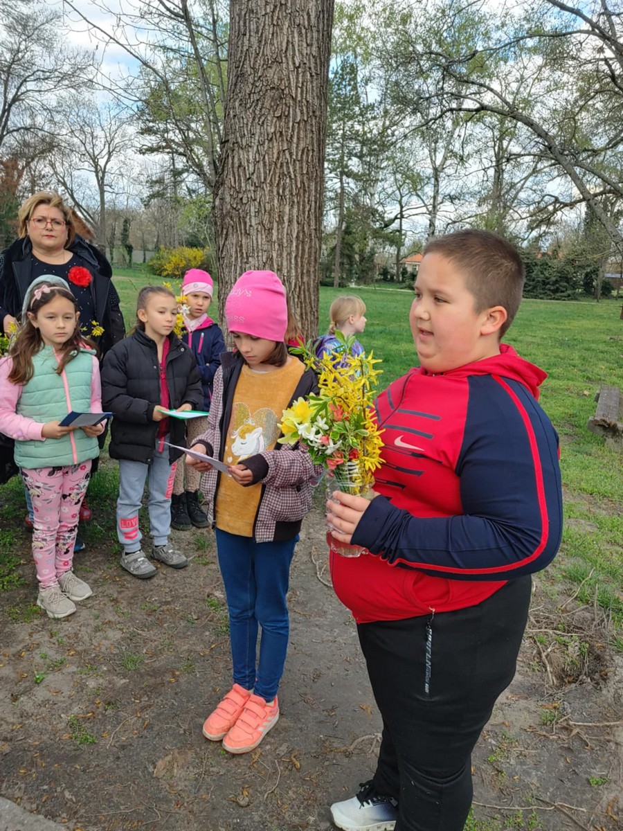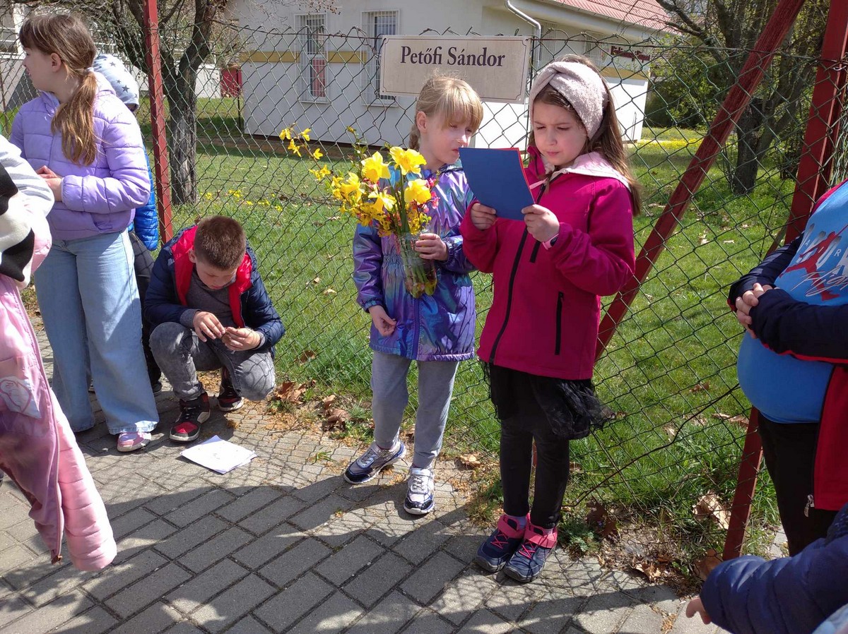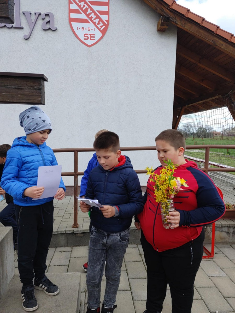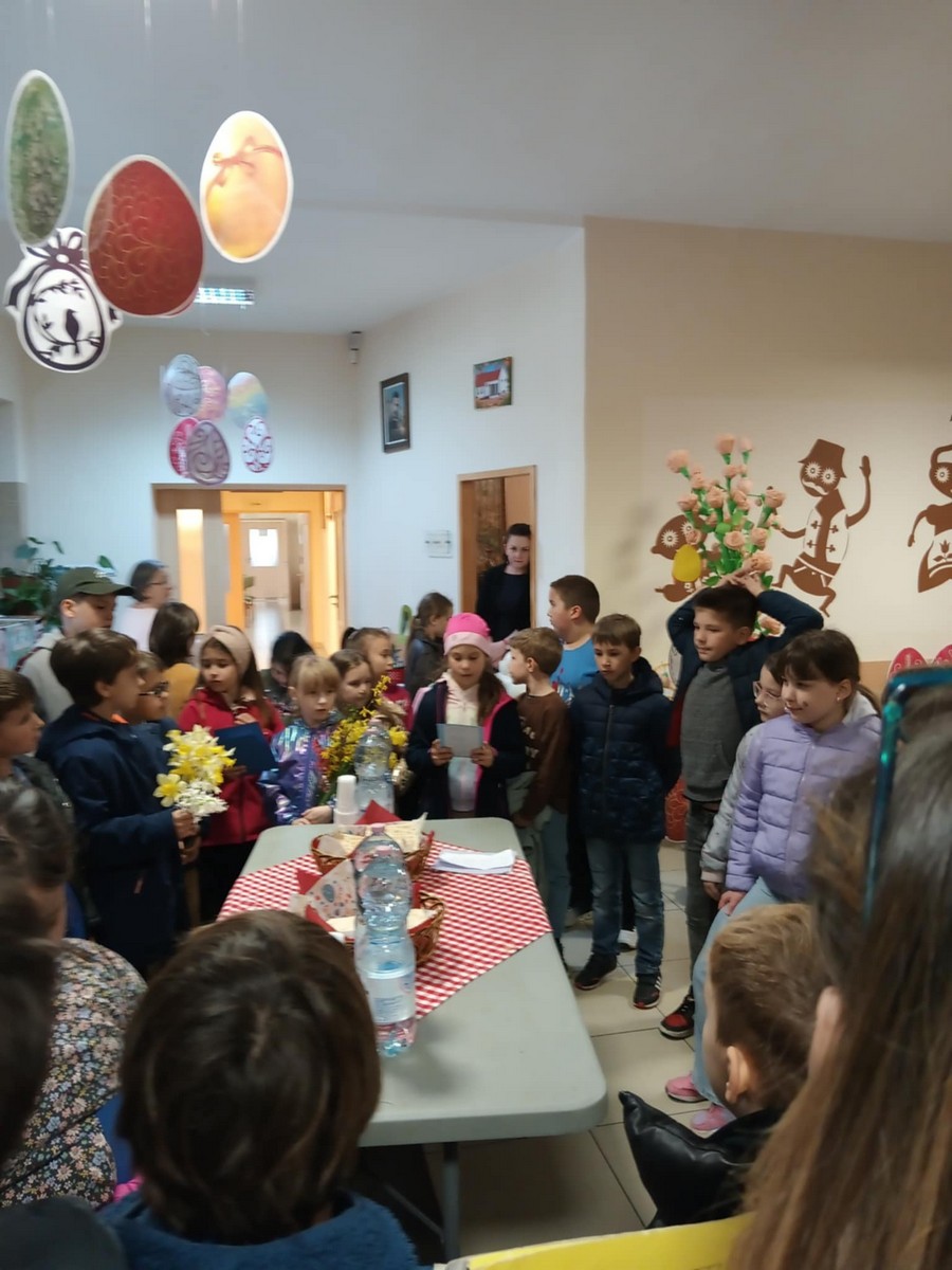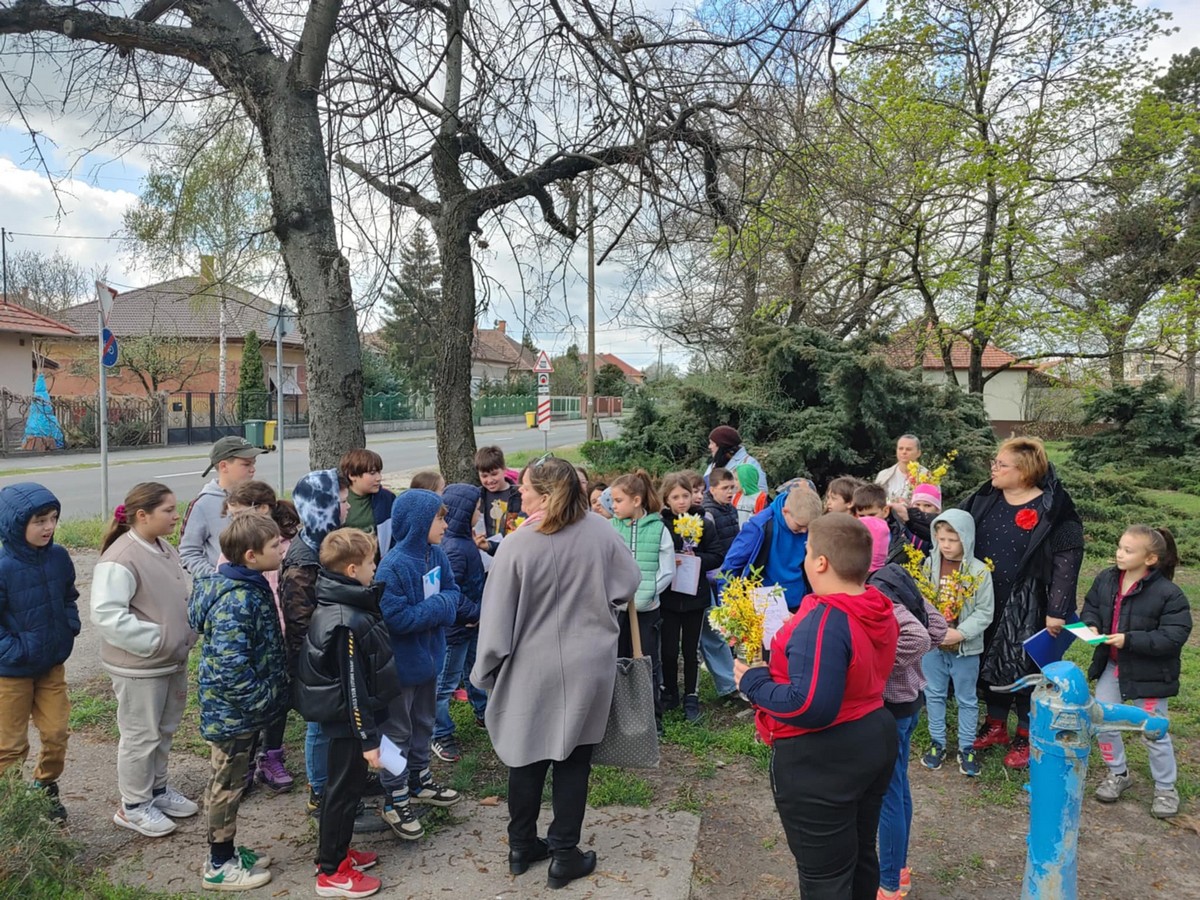 A Gondozási Központ udvarán kedves vendéglátásban volt részünk, énekkel viszonoztuk. Szent II. János Pál pápa szobrának Szatymazra érkezéséről hallottunk, arról is, iskolánk sakkban ügyes diákjai rendszeresen részt vesznek a Wojtyla Kupán. A Dankó Pista Művelődési Házban pászkát és vizet vettünk magunkhoz, visszaemlékezve Mózesre, aki kivezette a zsidóságot Egyiptomból, az első húsvét alkalmával.