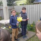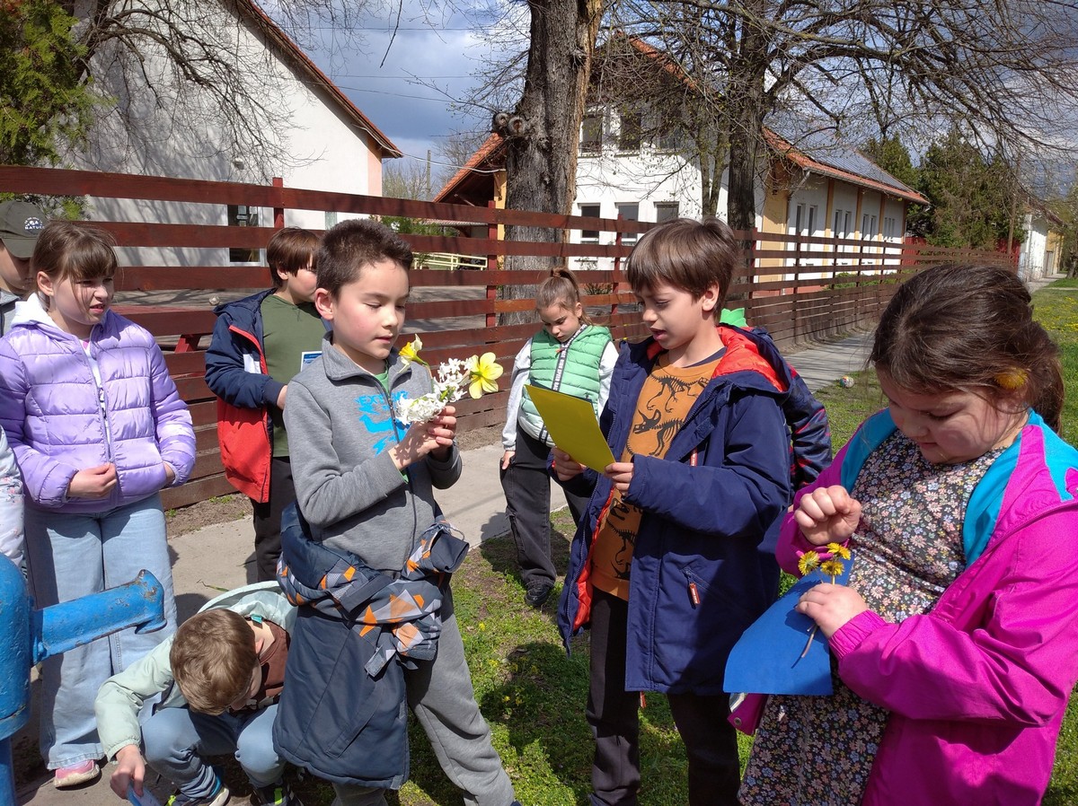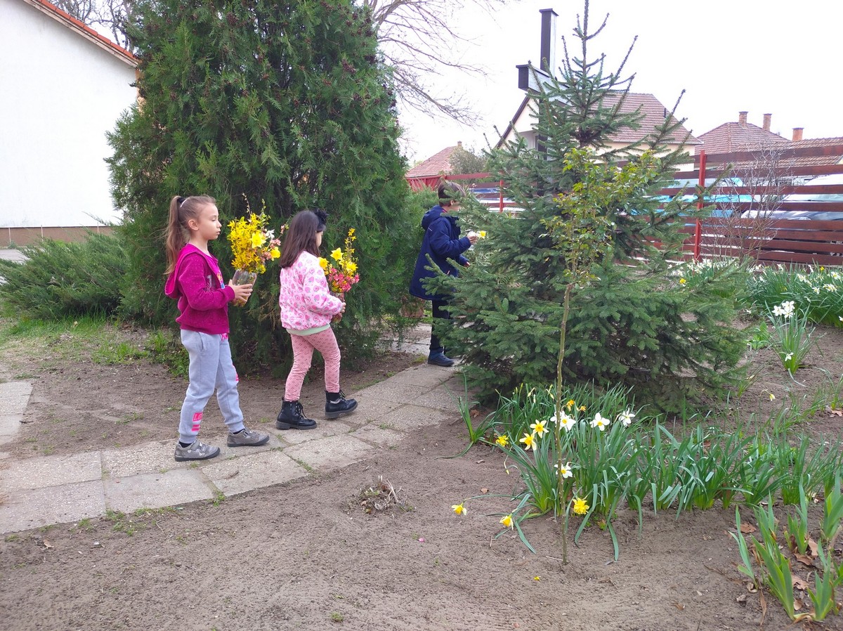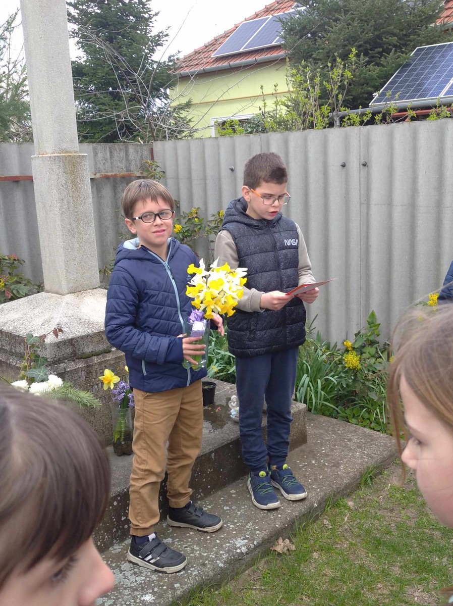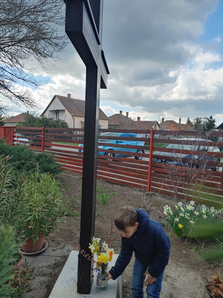 A kereszteknél elhelyeztük a gyerekek által hozott kerti csokrokat. A kis kezek odahelyezték a virágokat, igazán meghitt, bensőséges pillanatokat éltünk át.