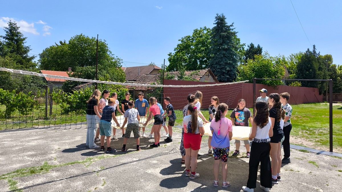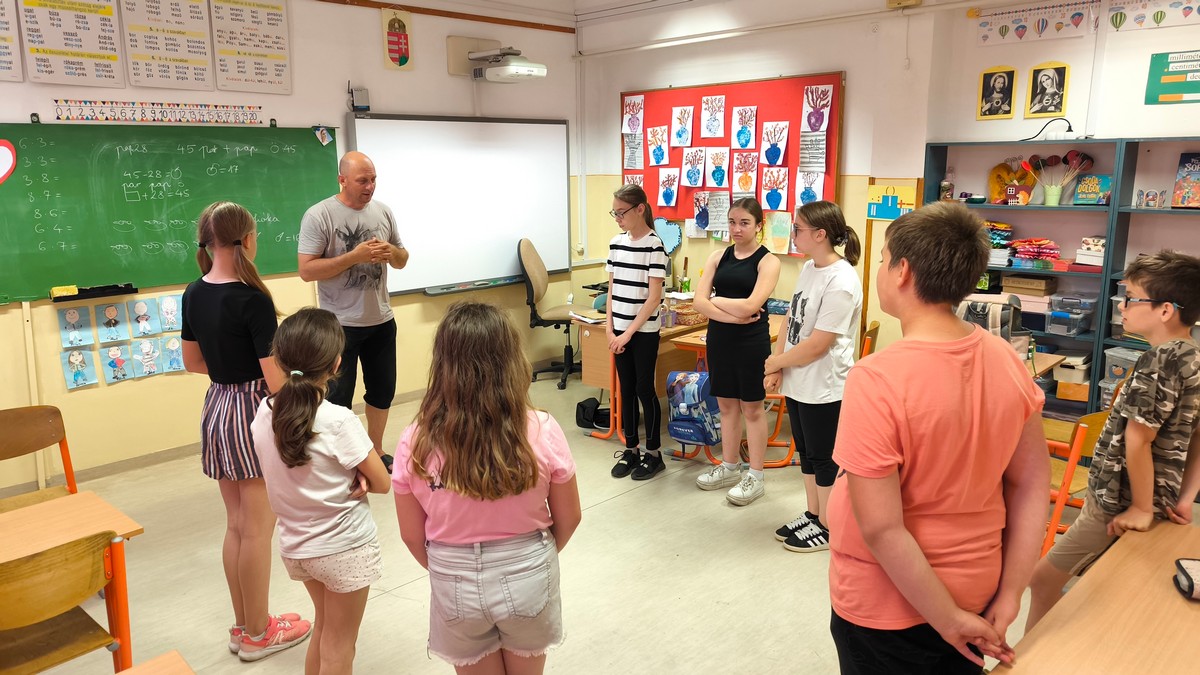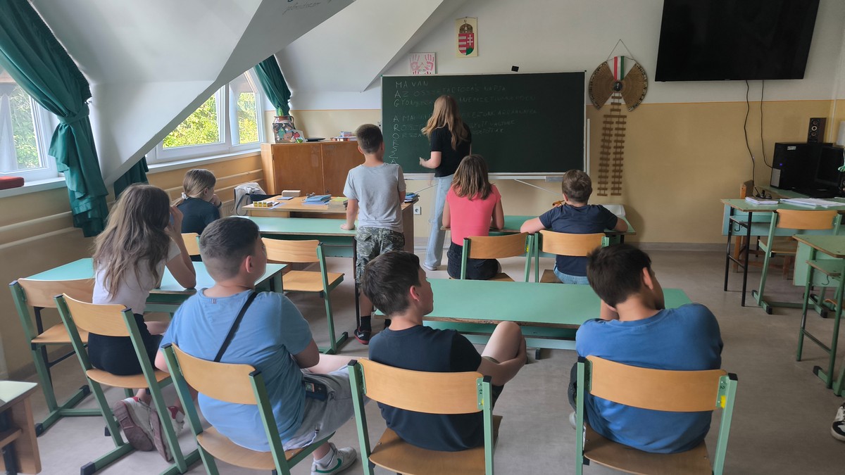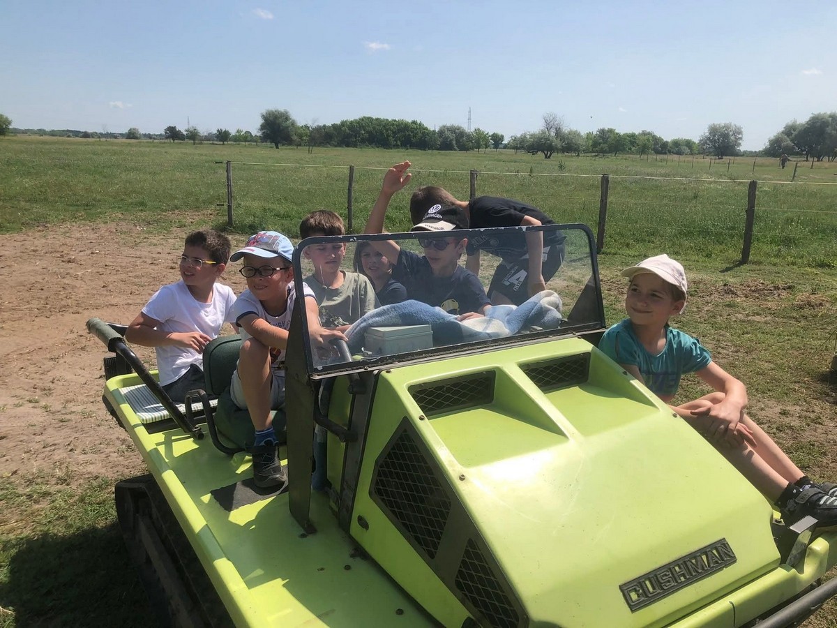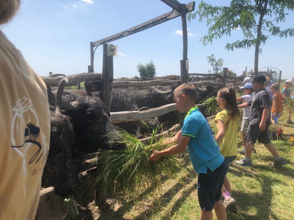 A 2.a és b osztály a szülők és tanítónénik segítségével jutott el Sándorfalvára a Mákszem Bivalyoskertbe. Kiskocsikkal vitték a diákok a szénát, füvet a mindig éhes bivalyoknak. A szalmabálákon ugráltak, homokfutóztak a gyerekek. A magyar mudi kutya a vízhez terelte a bivalyokat, a gyerekek pedig vízipisztollyal locsolták őket a nagy melegben. „Hajókázhattak” a játszótéren, majd kvízkérdésekre válaszoltak. A leglelkesebb diákok jutalmul bivalyos matricát is kaptak.