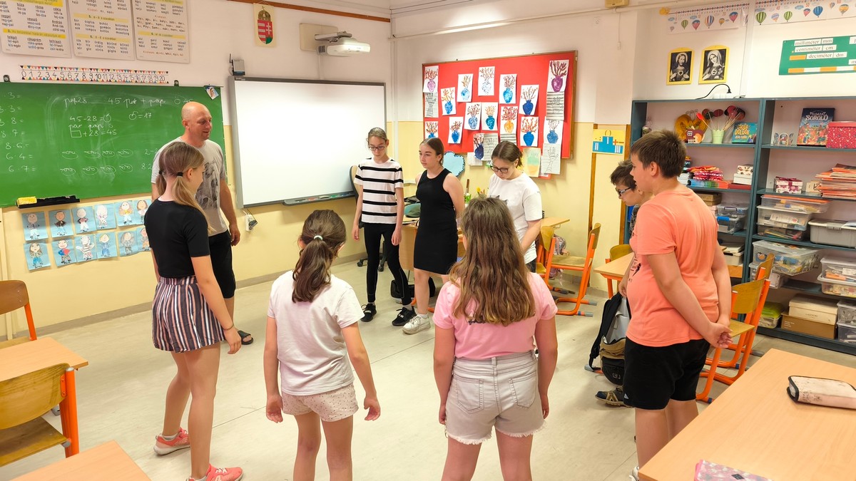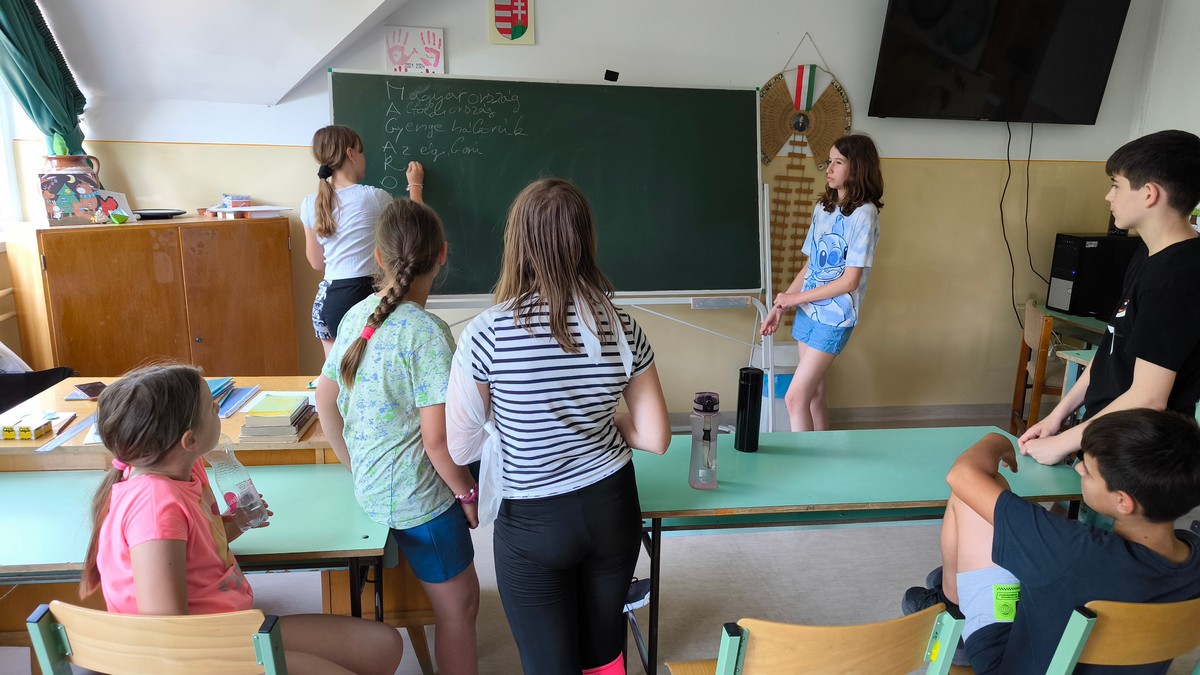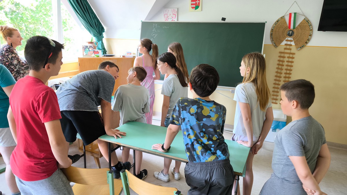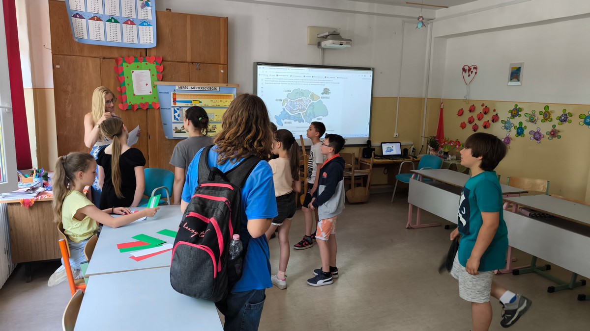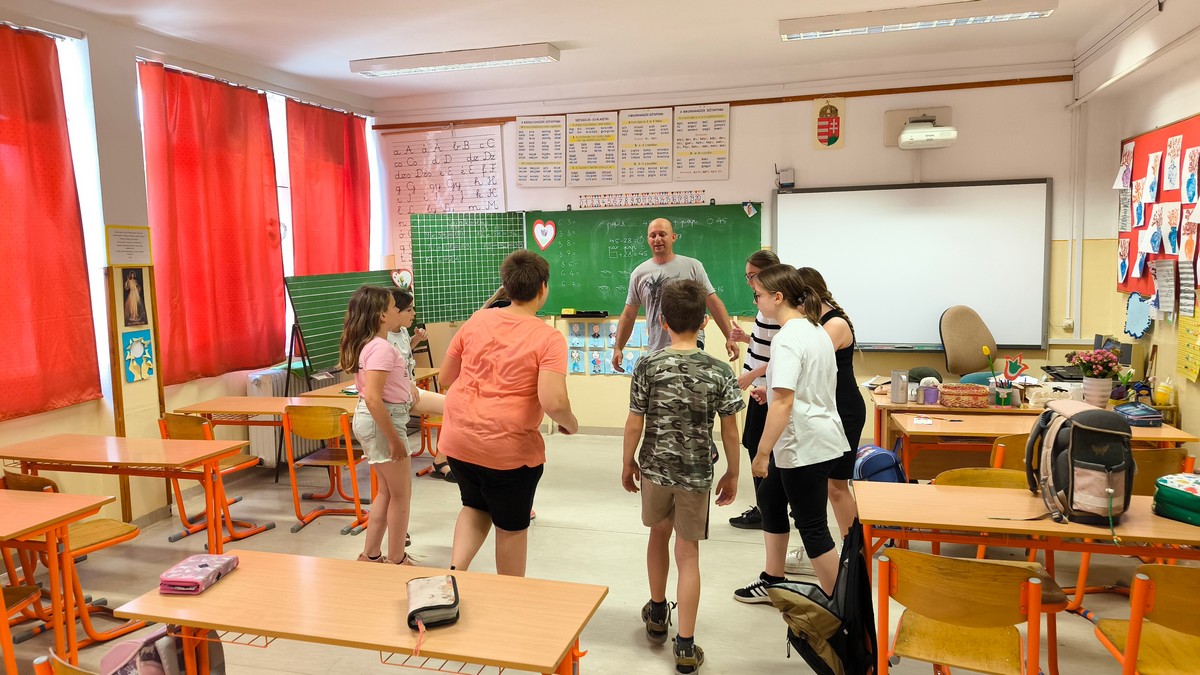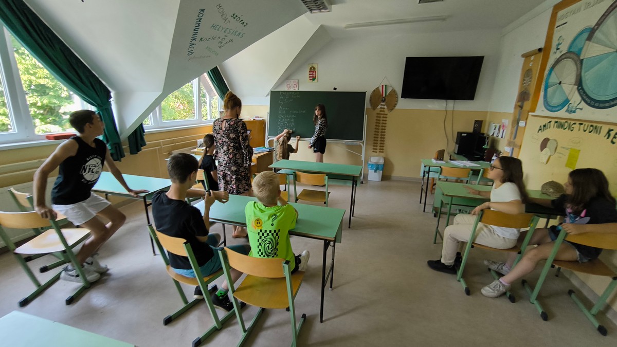 A 2.a és b osztály a szülők és tanítónénik segítségével jutott el Sándorfalvára a Mákszem Bivalyoskertbe. Kiskocsikkal vitték a diákok a szénát, füvet a mindig éhes bivalyoknak. A szalmabálákon ugráltak, homokfutóztak a gyerekek. A magyar mudi kutya a vízhez terelte a bivalyokat, a gyerekek pedig vízipisztollyal locsolták őket a nagy melegben. „Hajókázhattak” a játszótéren, majd kvízkérdésekre válaszoltak. A leglelkesebb diákok jutalmul bivalyos matricát is kaptak.