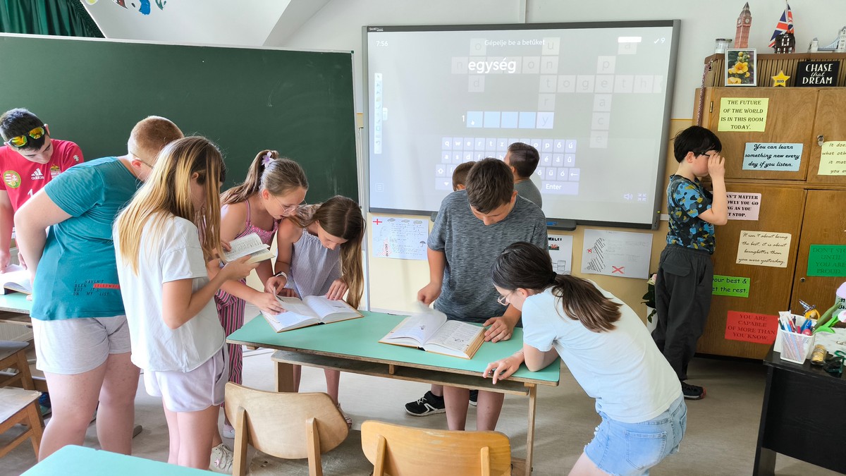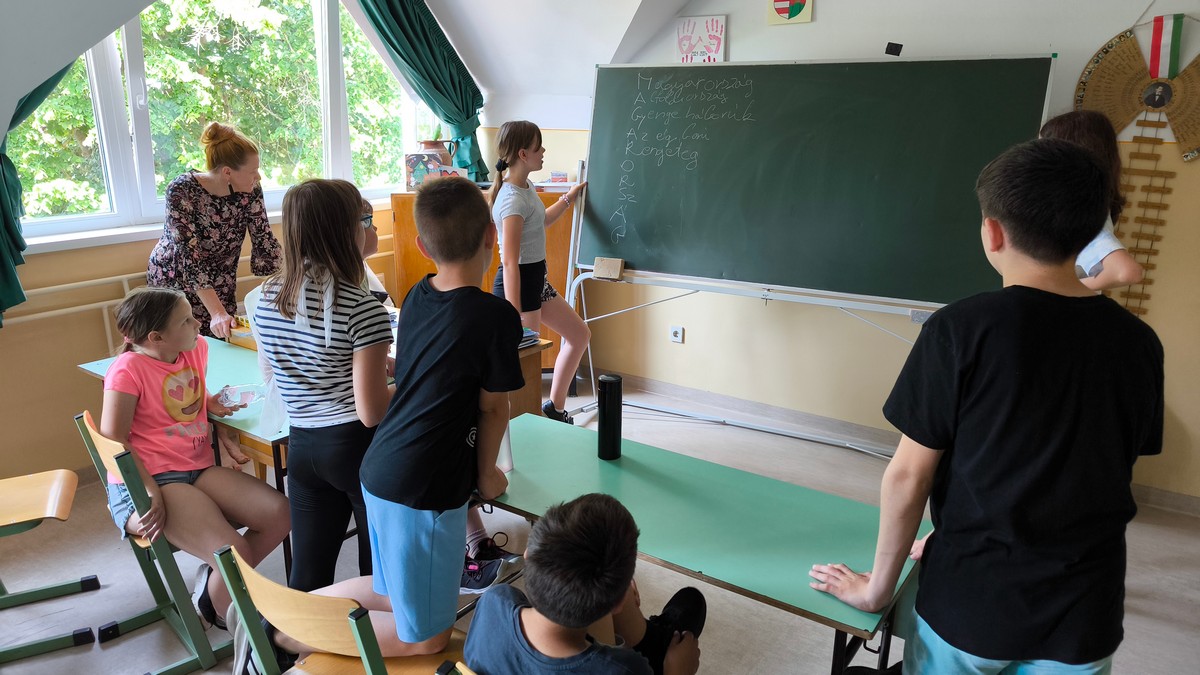 A 4., 5. és 6. osztályos diákok vegyes csapatokban körbejárták a nemzeti összetartozás napjának témakörét és az iskolát is tíz állomáson át. Minden állomás egy tantárgy szemszögéből vezette őket végig az értékeken és összefüggéseken. Megvizsgáltuk a napnak a jelentőségét földrajzi, történelmi, irodalmi és matematikai szemszögből is, a testnevelés, a kézművesség, a néptánc és az angol nyelv is színesítette az állomások sorát. A diákoknak együttműködve kellett minél ügyesebben teljesítenie, hogy minél magasabb pontot kapjanak, hiszen az első három csapat kis ajándékokkal gazdagodott. A kézműves és irodalmi állomások produktumai kerültek ki az összetartozás napjára készült paravánra, így a diákok még közelebbinek érezhették a nap jelentőségét.