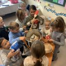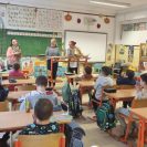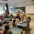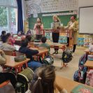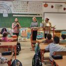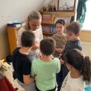 Iskolánkban a humán munkaközösség bábelőadással készült ezen alkalommal a legkisebbeknek, az első és második osztályosoknak. Az előadás kezdetén felcsendült furulyán az ismerős dallam, amely a magyar népmesék elejét jelzi. Ezután gyerekek figyelemmel kísérték, hogyan készül a népmesékből híres kőleves. A fakanál bábokkal megelevenített mesét hallgatva nevetés töltötte meg a tantermeket. A Kőleves előadói Pölösné Hudák Dóra, Szabó Judith és Gergely Viola voltak.