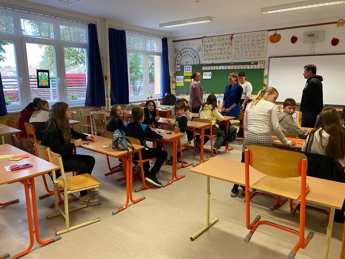 A szombati munkanapon nem a padban ültünk, hanem az iskola tanulói, elsőtől hatodik osztályig, felfedezőútra indultak, hogy megismerhessenek minél több szakmát. Betekintést nyerhettek milyen mentősnek (Nyeste Zsolt), kozmetikusnak (Pölösné Pálinkó Erika), cukrásznak (Ráczné Berta Erzsébet), mezőgazdásznak (Bakos József) és kamionsofőrnek (Kovács Gábor) lenni. A vendégeink nagy lelkesedéssel válaszolták meg diákjaink és tanáraink megannyi kíváncsi kérdését. Emellett a régi idők szakmáit is megismerhették, hiszen a múlt szolgál alapul a jelen és a jövő szakmáinak. A ’Mi leszek, ha nagy leszek’ állomáson a tanulók egy picit belemélyedhettek a kérdésbe és kézműves foglalkozás formájában töprenghettek életcéljukon. Rendhagyó módon a pályaválasztási napunk az Aktív hétre esett, így a témahét egy biciklis – rolleres KRESZ pályában csúcsosodott ki, ahol a tanulók a közlekedés alapvető szabályait gyakorolhatták, illetve tesztelhették ügyességüket, tudásukat, valamint a közlekedéshez kapcsolódó szakmákról is beszélgettünk.