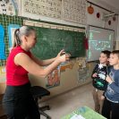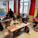 Az alsó tagozatos diákok programjában kiemelt szerepet kapott a játékos tanulás. Grincs és az okostábla segítségével interaktív, mozgásos feladatot oldhattak meg, karácsonyi partikellékekkel fotózkodhattak, valamint tanulói tableteken karácsonyi szókincsre épülő memóriajátékkal játszhattak. Minden gyermek egy, kifejezetten erre az alkalomra készített foglalkoztató füzetet is kapott ajándékba. A kiadványban Jézus születésének történetéhez kapcsolódó feladatok (például Mária és József elvezetése Betlehembe egy útvesztőben, vagy a bibliai történet szereplőinek angol nyelven való felcímkézése) éppúgy helyet kaptak, mint a télhez és a karácsony megünnepléséhez kötődő tevékenységek. A gyerekek keresték a különbségeket képek között, karácsonyfadíszeket színeztek az angolul megadott színek alapján, valamint egy levélsbalonon megfogalmazhatták vagy lerajzolhatták karácsonyi kívánságaikat – természetesen csak azután, hogy eldöntötték, az év során inkább nice (jó) vagy naughty (csintalan) gyerekek voltak-e.