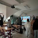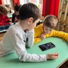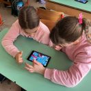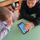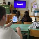 A felső tagozatos tanulókat mozgásos és tabletes állomások szintén várták. A mozgásos feladatok során karácsonyi dalok hiányos dalszövegének a kiegészítése és „Just Dance” színesítette a programot, míg a digitális állomáson Kahoot-quiz segítségével mérhették össze tudásukat a karácsonyi szokásokról. Jézus születésének történetét egy angol nyelvű mesefilm megnézésével dolgozták fel, amelyhez egy feladatlap is kapcsolódott. Egy másik állomáson egy, külön erre az alkalomra készített memóriajátékkal gyakorolhatták játékos formában a karácsonnyal kapcsolatos szókincset.