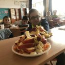 Minden évfolyamon az egészséges táplálkozással kapcsolatban kisfilmeket nézhettek meg tanulóink. Ezen kívül játékos feladatokat oldhattak meg, gyümölcstálakat készíthettek, gyümölcsből kreatív alkotásokat készíthettek, egészséges recepteket gyűjthettek. Utóbbiakból kiállítást rendeztek.
