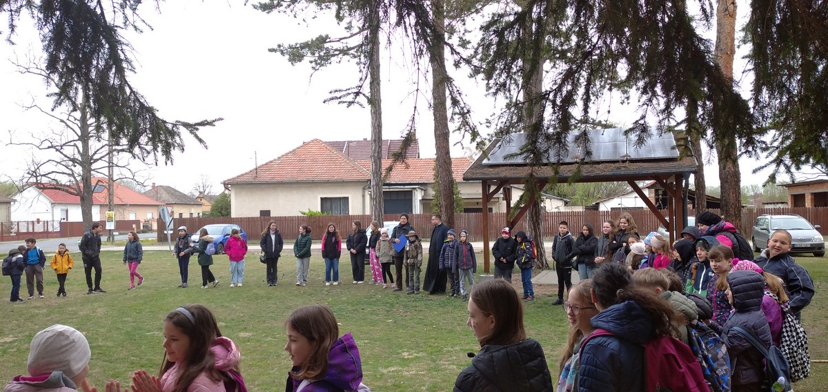 Az üllési, forráskúti , bordányi és szatymazi gyerekek ismerkedtek egymással. Jó hangulatban jártuk a Szeretet keresztútját, amelyet szoborrá válva jelenítettünk meg. Alexa János atya kísért minket, menet közben megható volt látni a diákokat, akik szentgyónásukat elvégezték. Az erdei séta után visszatértünk a templomhoz, ahol a finom ebéd várt minket. Az esőre álló idő sem vette el a kedvét a gyereknek, új ismeretségek, barátságok születtek. Ez is bizonyságul szolgált nekünk: a mai kor ifjúsága vágyik a közösen megélt lelki élményre.