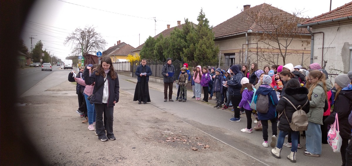 Az idei nagyböjtben három keresztút részesei lehettünk: a pedagógusok a magyar nemzetért járták végig a stációkat, a szentségfelvételre készülő 3.-osok és 8.-osok összefogva élték át ezt a nehéz utat, a szabadtéri keresztútra pedig öt település hittanosai érkeztek Zsombóra.