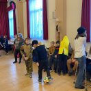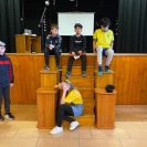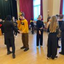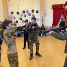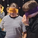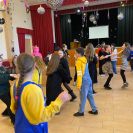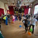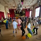 A játékok sem maradhattak ki a farsangból, volt újságpapíron táncolás, lufipukkasztás és fánk evő verseny. Végezetül pedig kipróbáltuk, hány osztálytárs fér bele egy hullahopp karikába. A tanulók különbnél különb megoldásokkal álltak elő a minél okosabb helykihasználásra.
