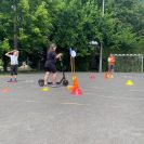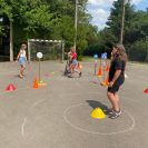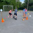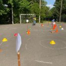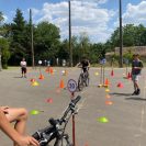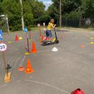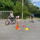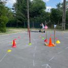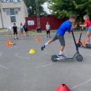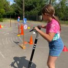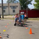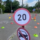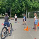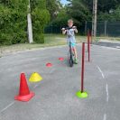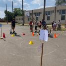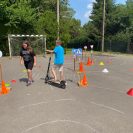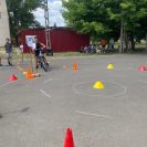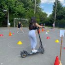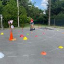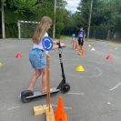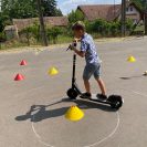 Az iskola területén balesetvédelmi okokból a biciklit és az elektromos rollert csak tolni lehet. Ez a szabály június 16-án nem volt érvényes, hiszen pont az ellenkezőjét kértük a diákoktól. Ezen a napon ebéd után KRESZ pályát állítottunk fel, amin rollerrel és biciklivel lehetett végigmenni a szabályok és jelzések betartásával. Ebben a délutánban csúcsosodott ki az a könyvtár foglalkozás sorozat, amelynek célja az alapvető KRESZ szabályok elsajátítása volt.